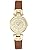 - Gold-tone bracelet watch featuring champagne dial with black-printed inside minute tracker