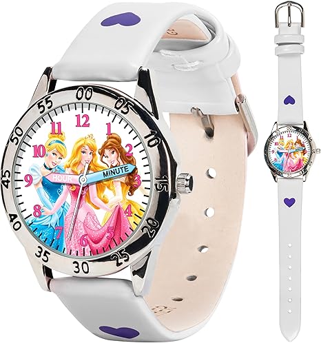Disney Princess Time Teacher Watch for Kids – Easy Analog Time Learning, Colorful Princess Design, Adjustable Strap