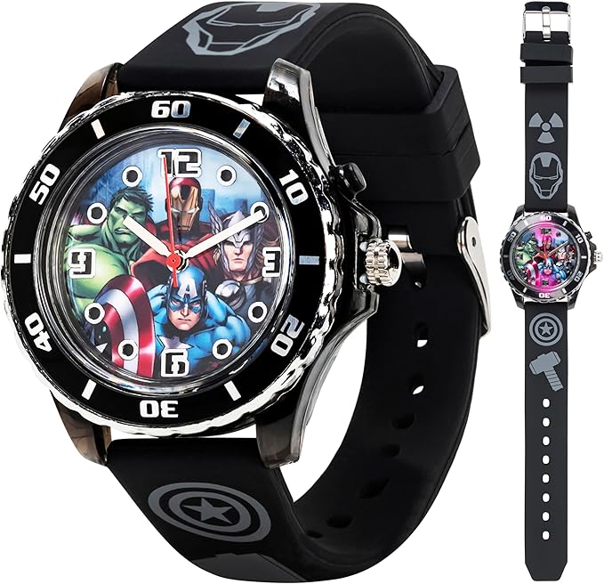 - Heroic LED Display: A spectacle of colors ignites with a push; showcasing a dazzling LED light show on the watch's face; reminiscent of the Avengers' might.