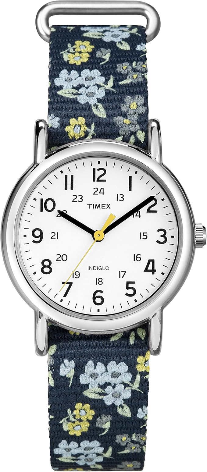 - Adjustable blue floral patterned 16 millimeter nylon slip-thru strap fits up to 7.5-inch wrist circumference