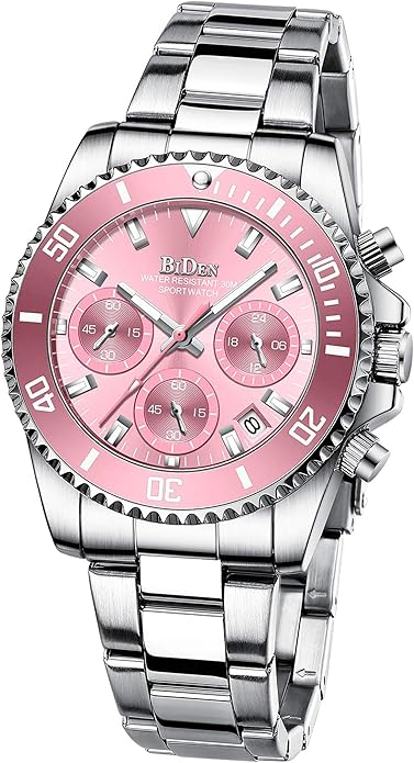 - ★Women Chronograph :Three multi-function sub-dials support stopwatch and date , rotatable bezel,Japanese quartz movement and battery provide accurate time keeping.exquisite appearance, high-quality manufacturing technology, luxurious mirror is very conspicuous And beautiful, is the best gift to give.